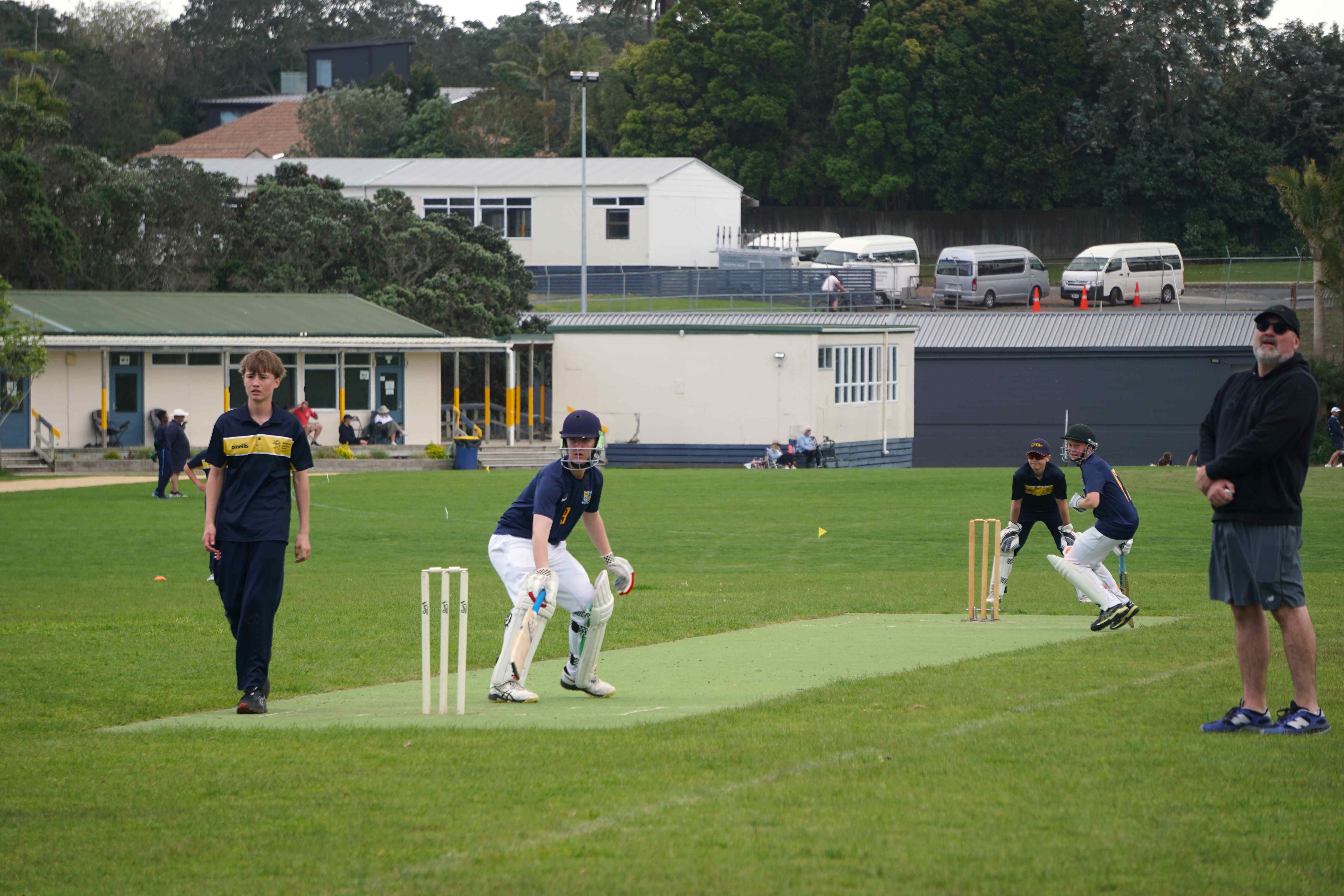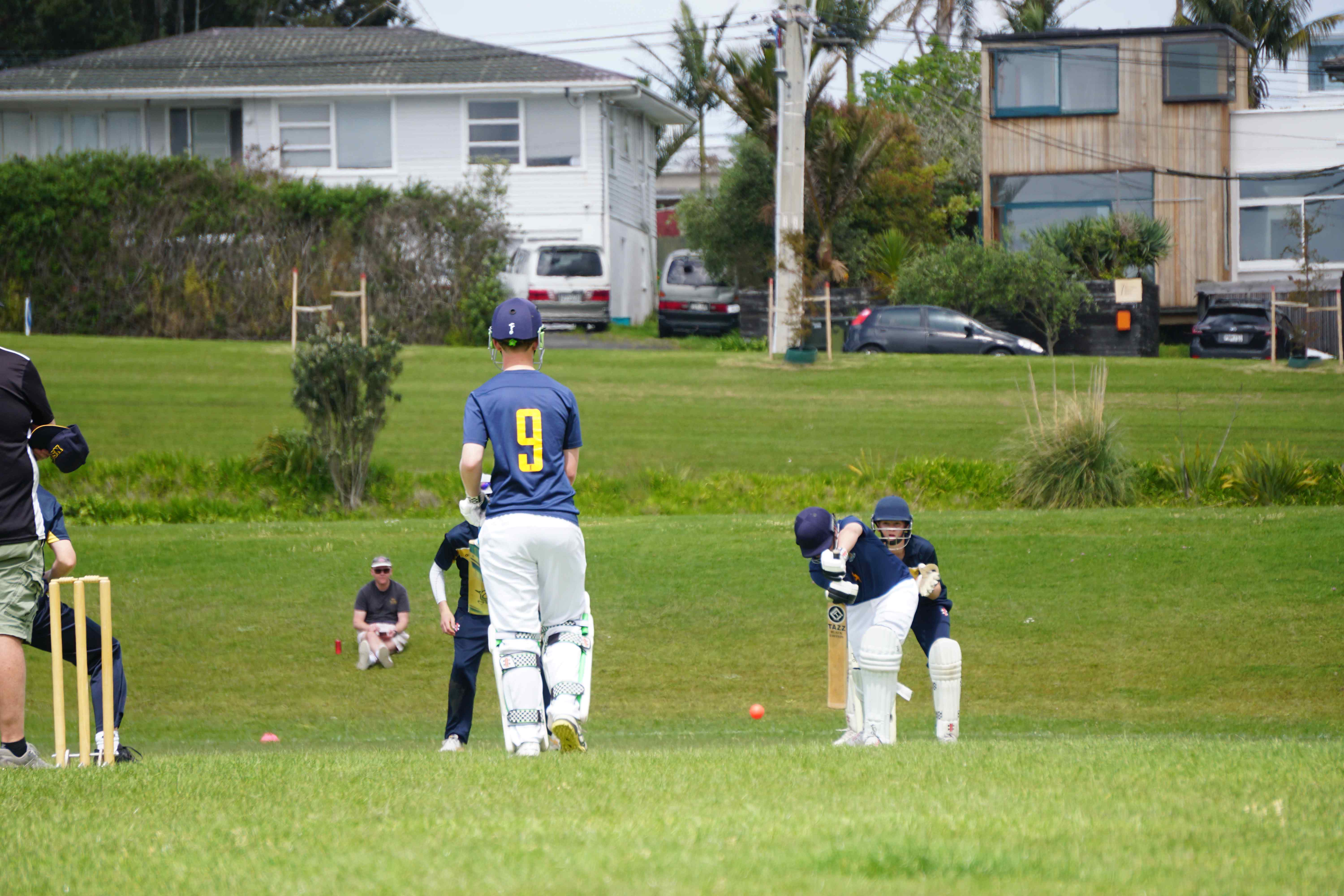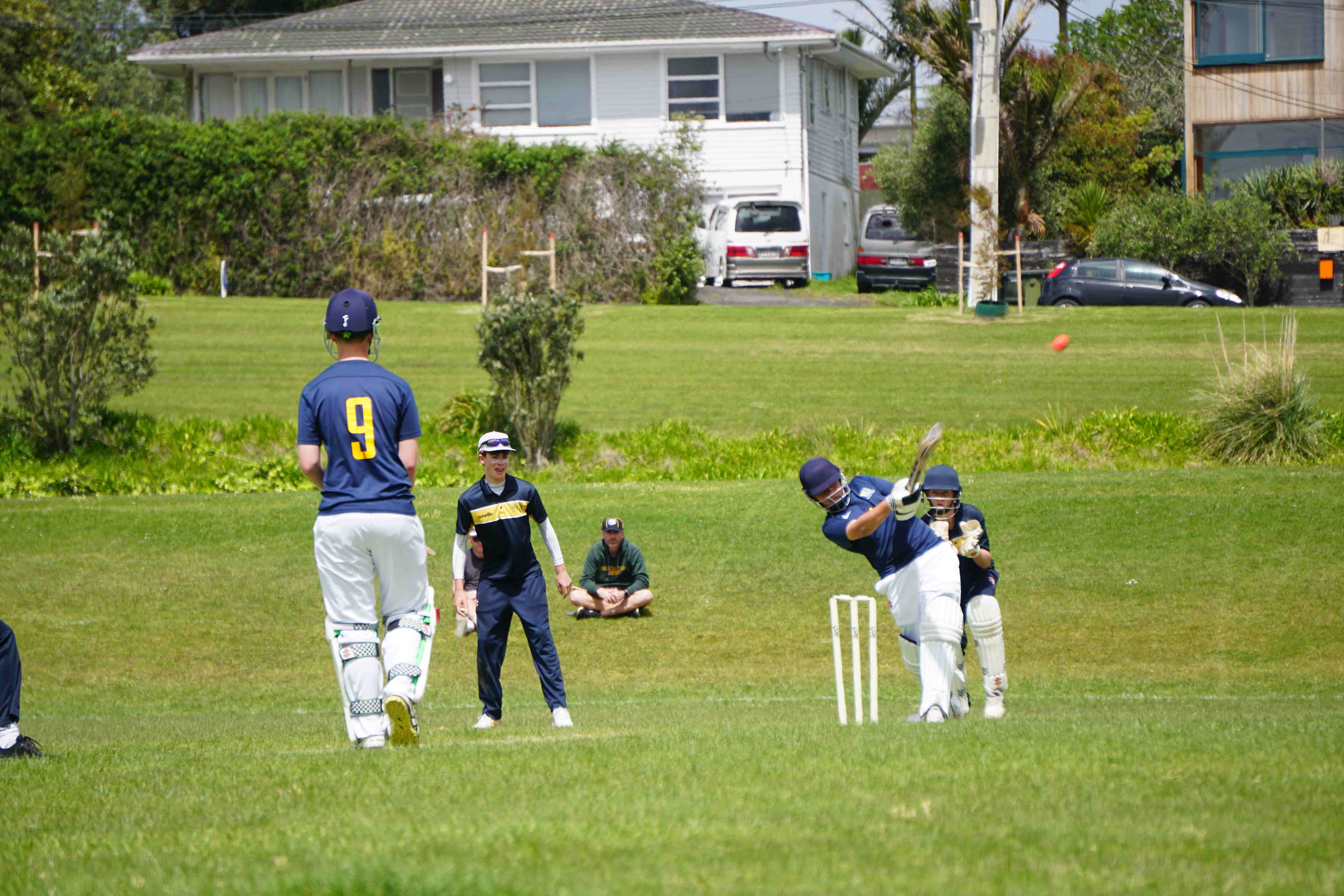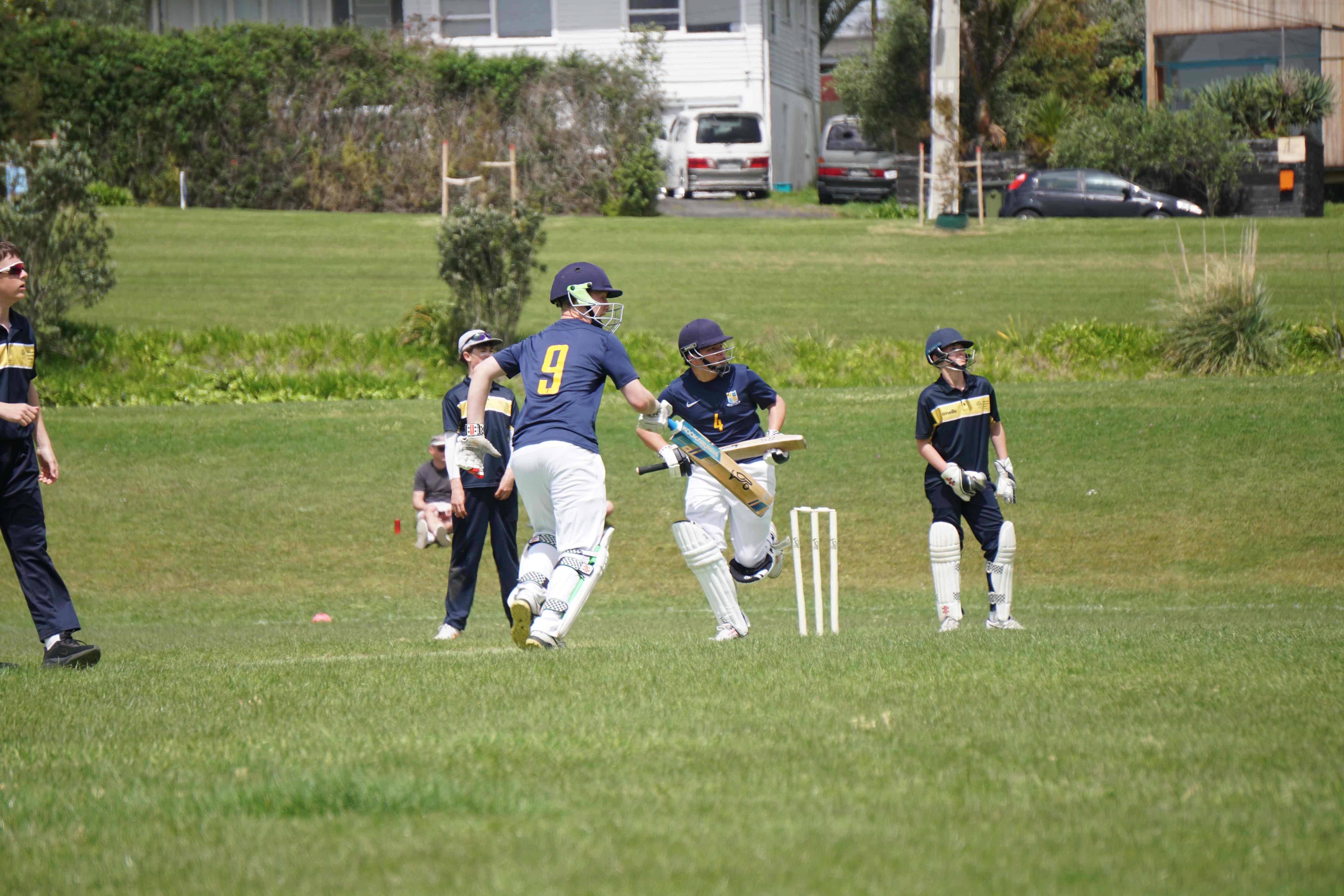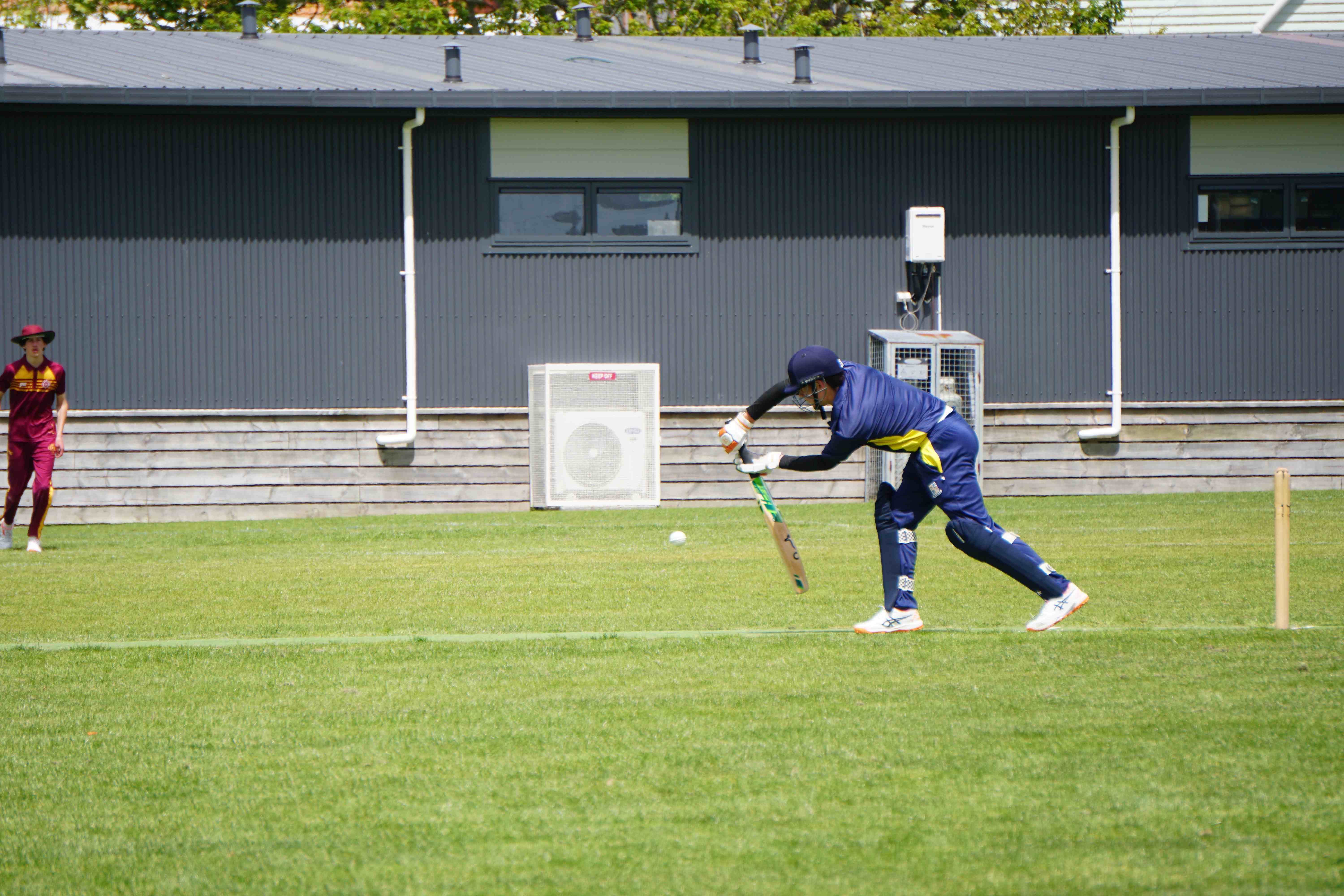 Caelan Scott (9LEE) and Liam Abbot (9MKE) each grabbed an early wicket to threaten an upset, but a superb 112 from the Takapuna Grammar opener scored at a furious rate soon dispelled that idea. Liam Duggan (10KKM) finally dismissed him while bowling very well, taking 1 for 15 off 5 overs.