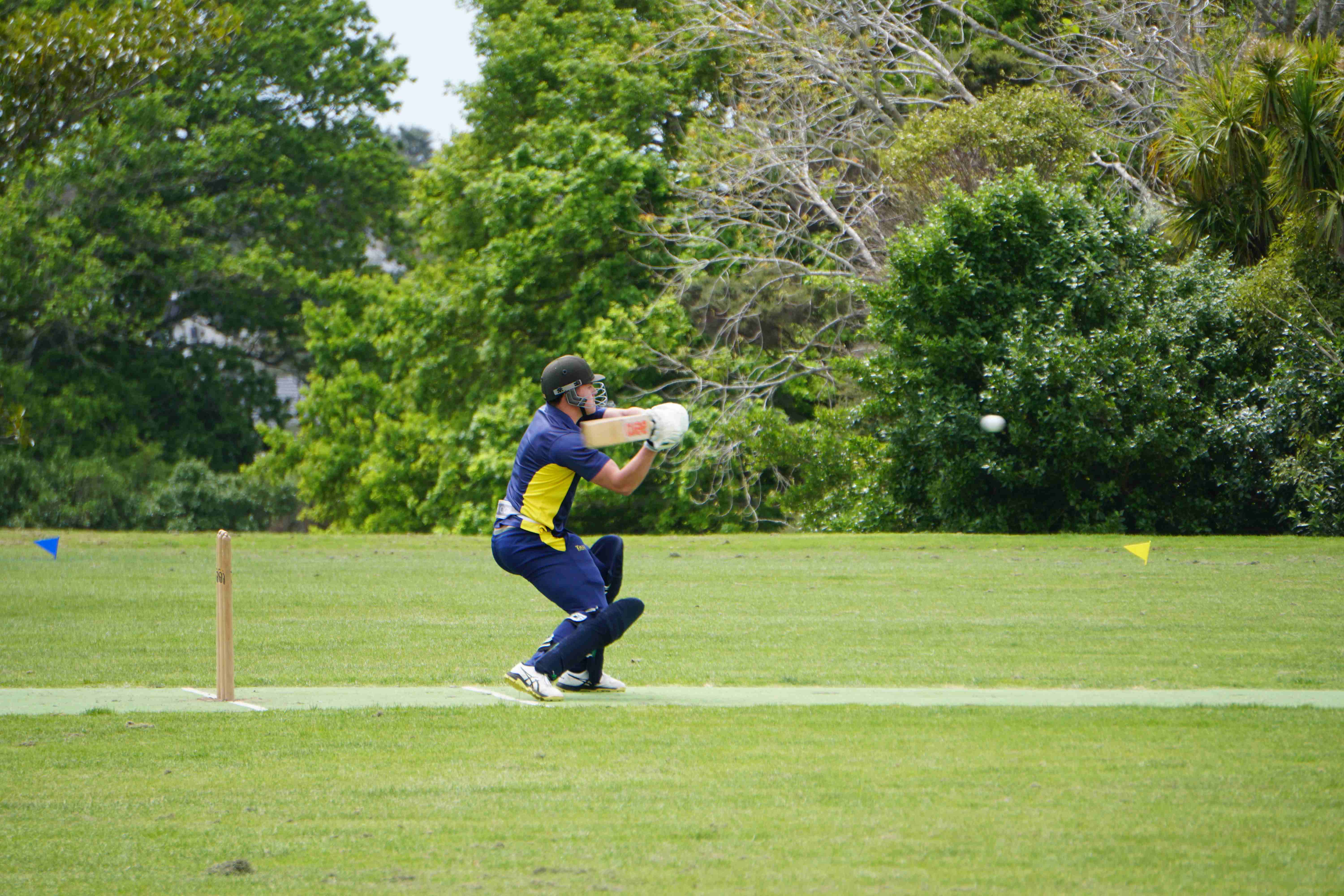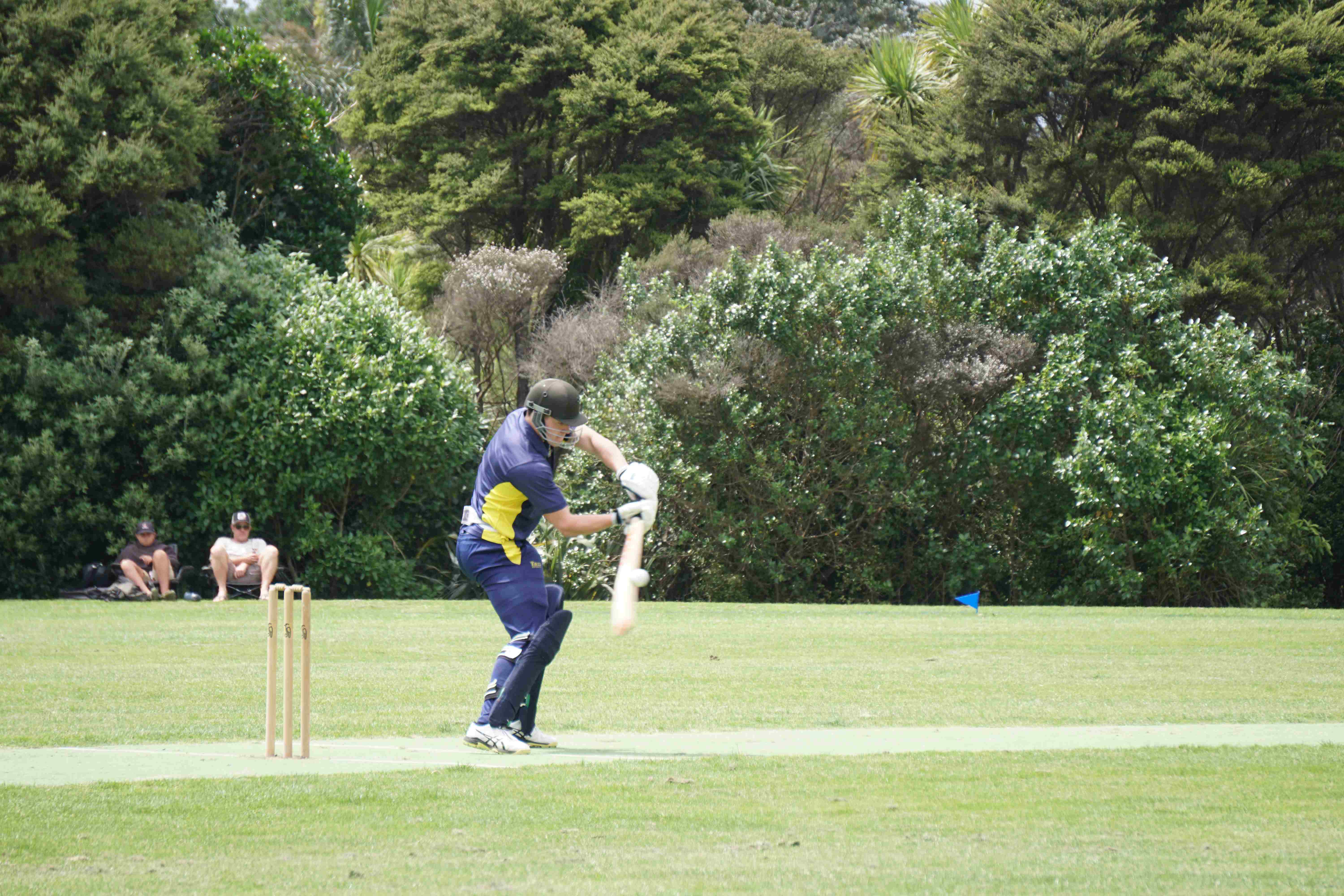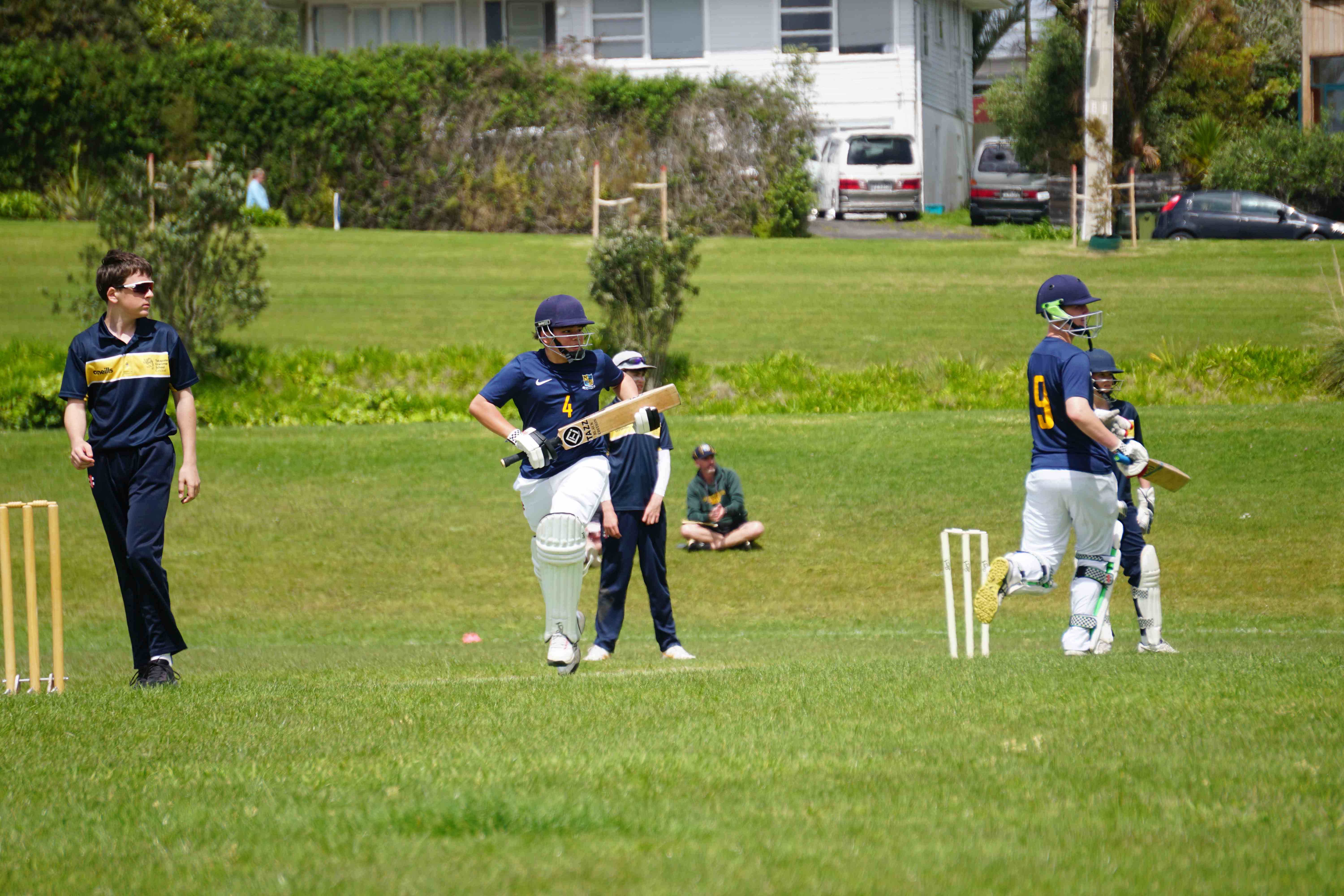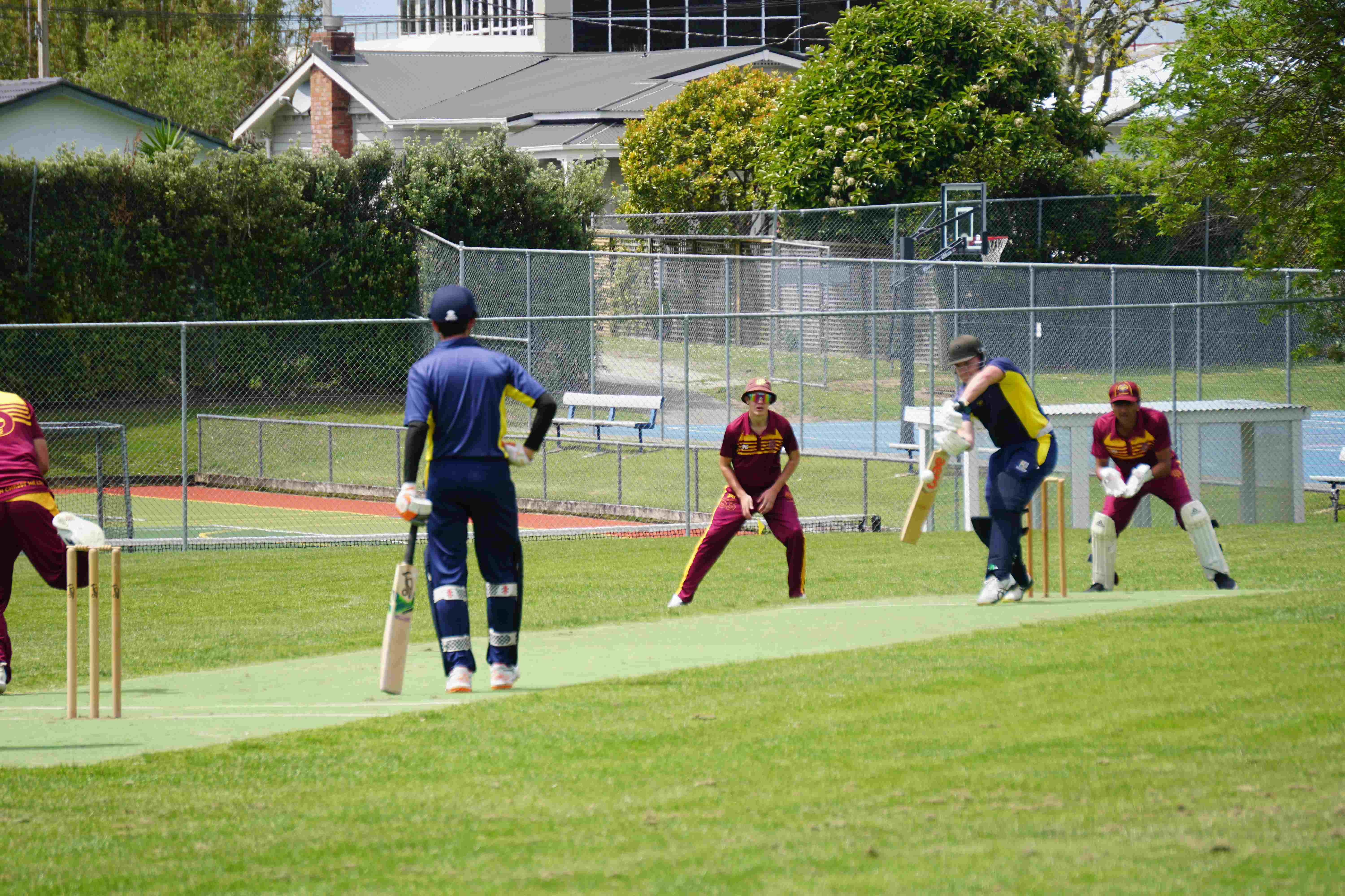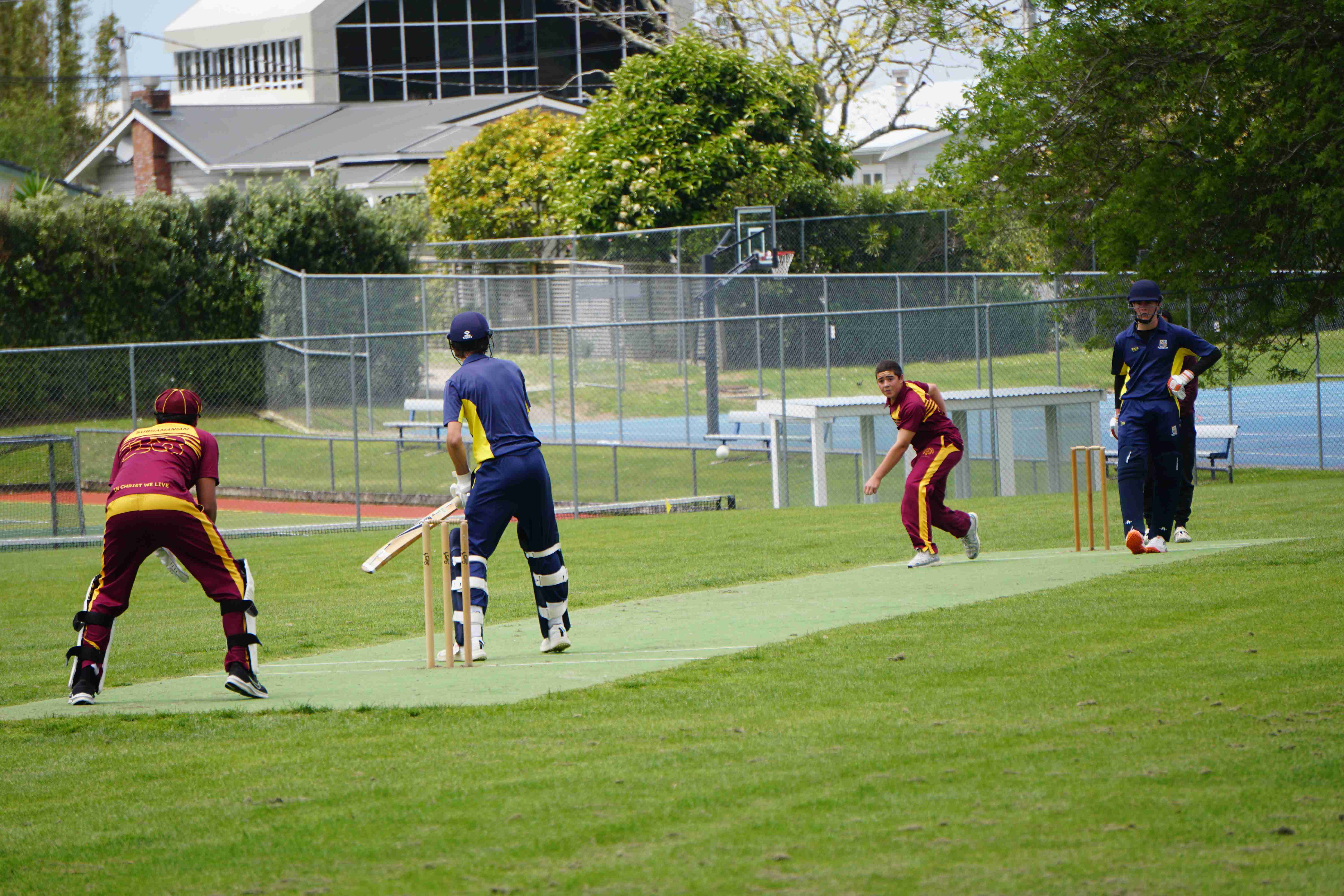 Caelan Scott (9LEE) and Liam Abbot (9MKE) each grabbed an early wicket to threaten an upset, but a superb 112 from the Takapuna Grammar opener scored at a furious rate soon dispelled that idea. Liam Duggan (10KKM) finally dismissed him while bowling very well, taking 1 for 15 off 5 overs.