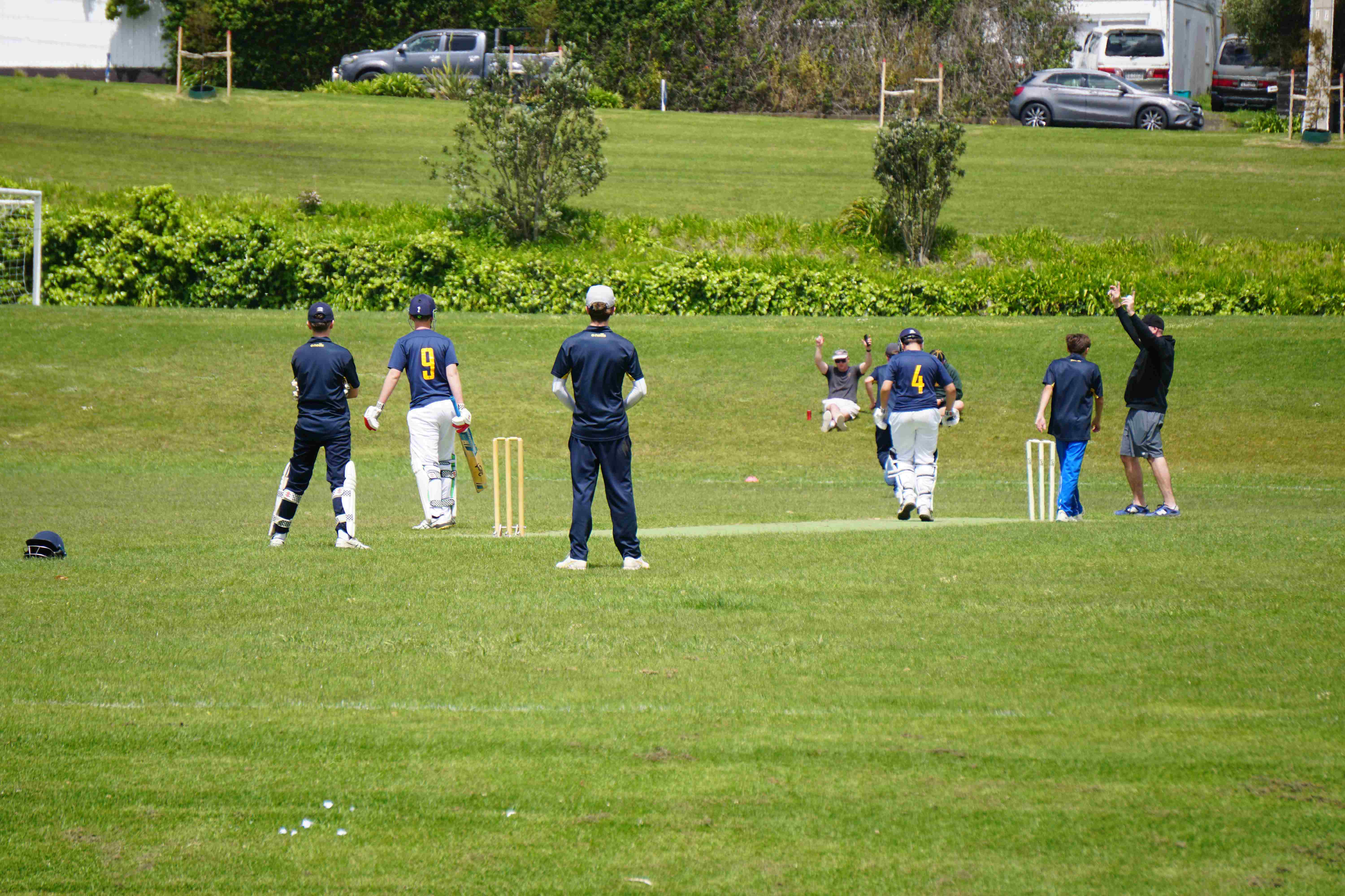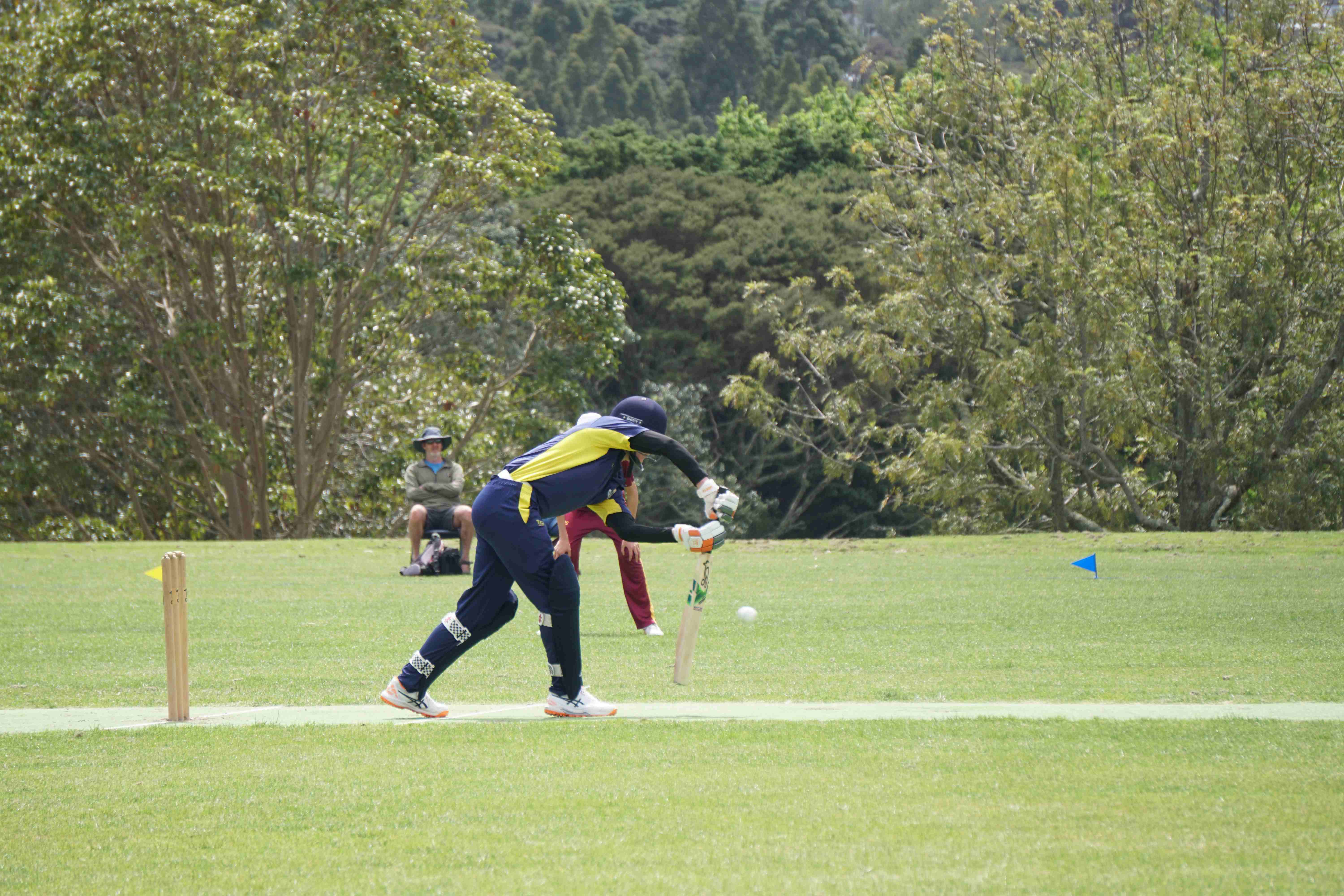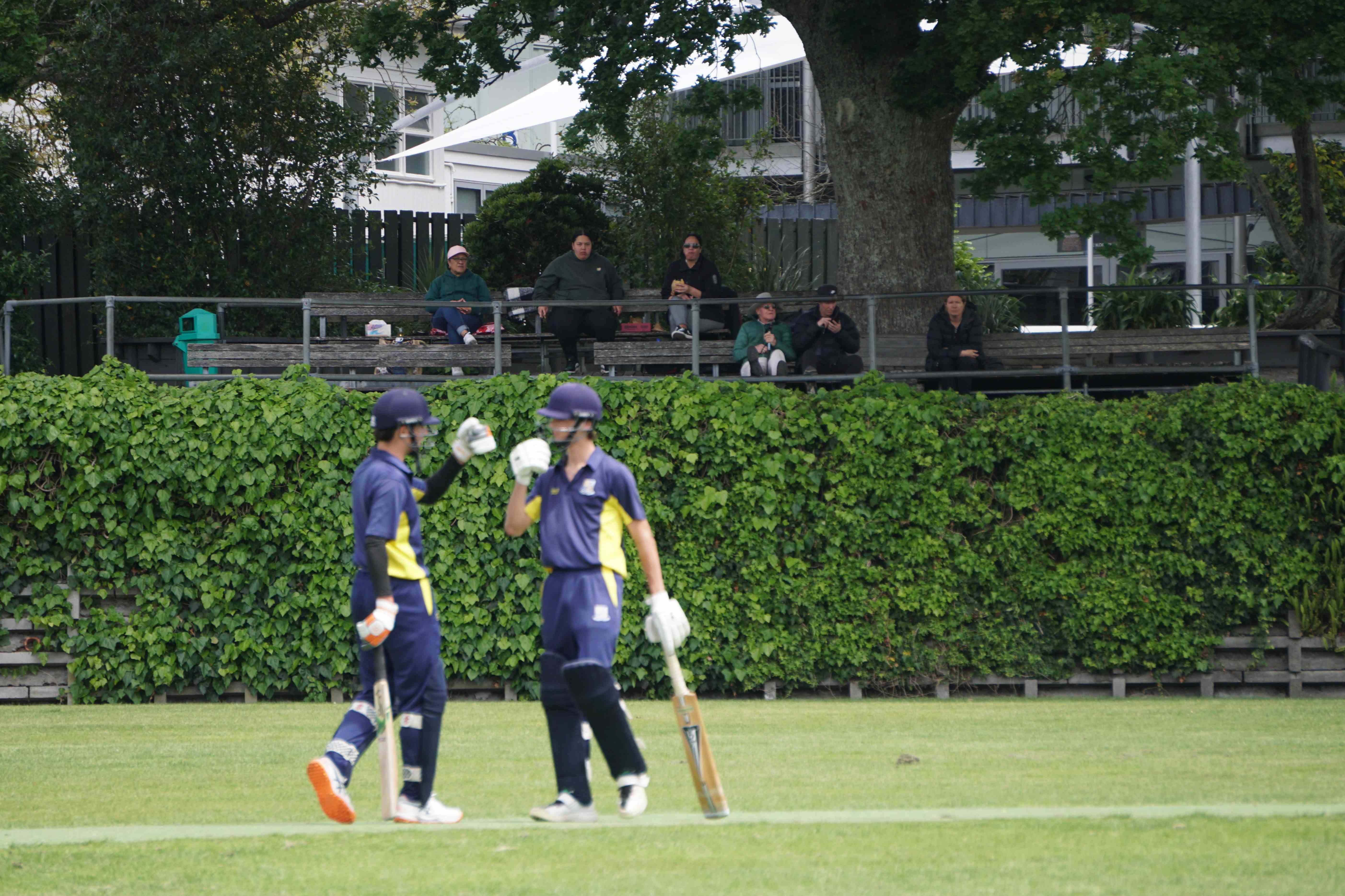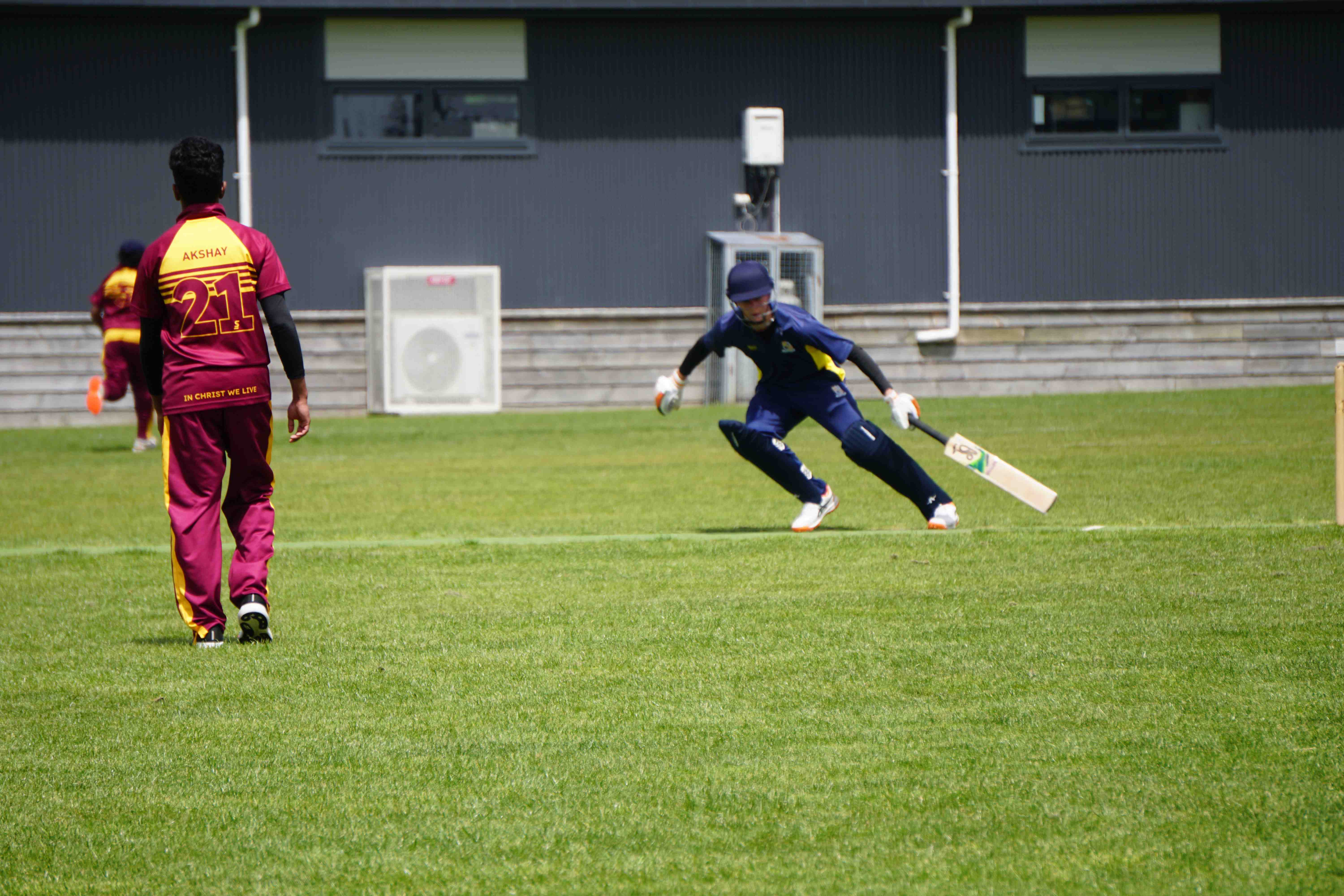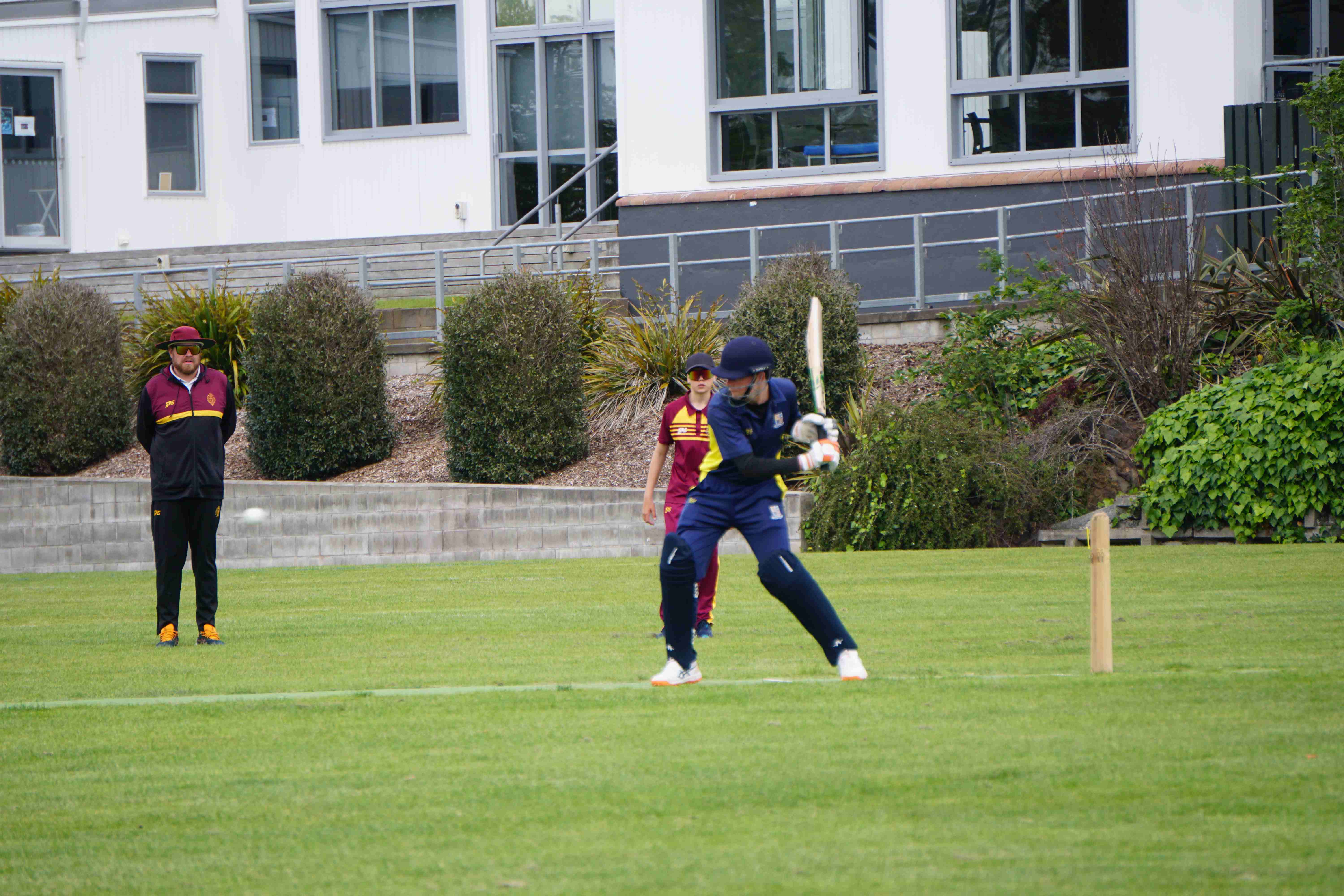 Caelan Scott (9LEE) and Liam Abbot (9MKE) each grabbed an early wicket to threaten an upset, but a superb 112 from the Takapuna Grammar opener scored at a furious rate soon dispelled that idea. Liam Duggan (10KKM) finally dismissed him while bowling very well, taking 1 for 15 off 5 overs.