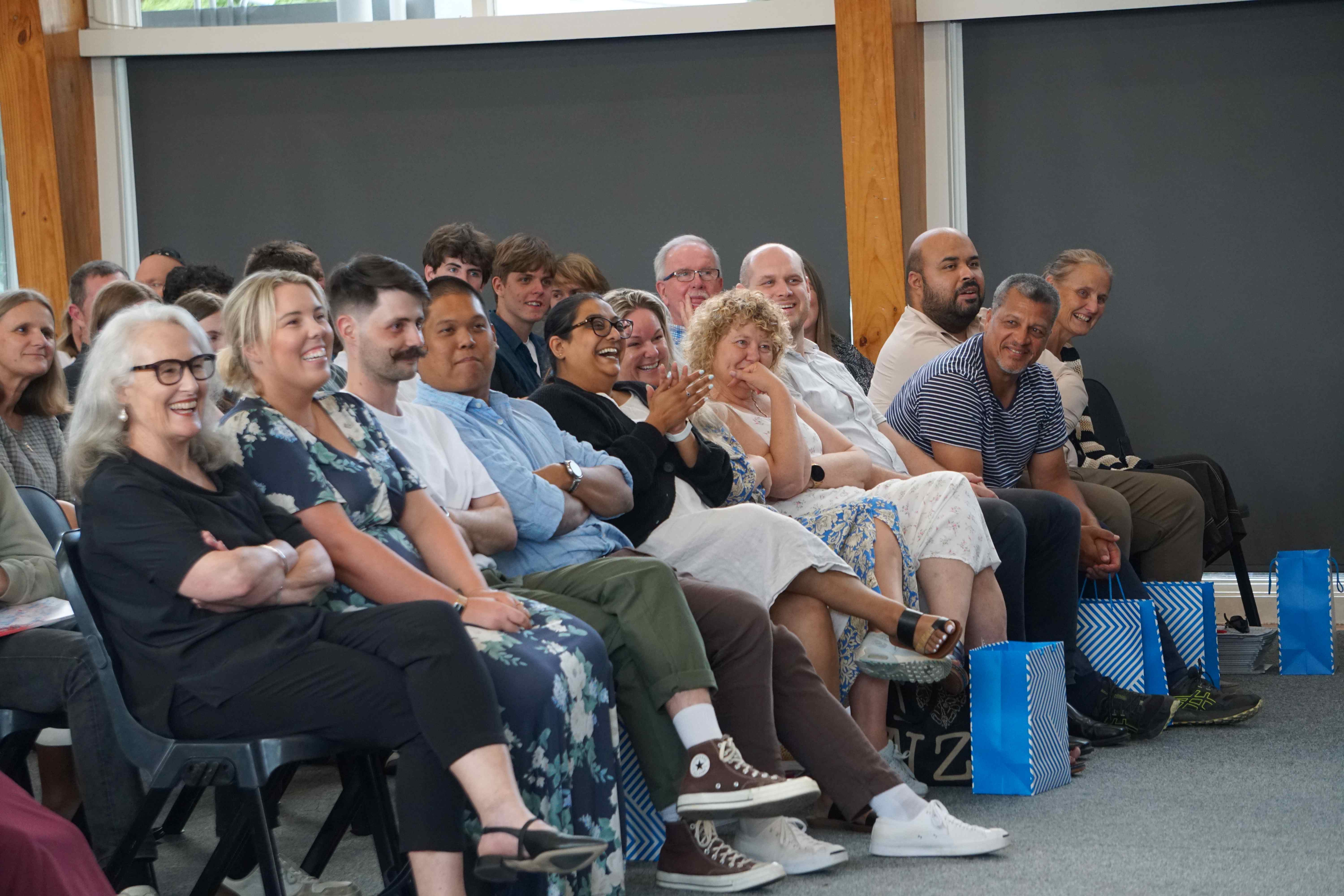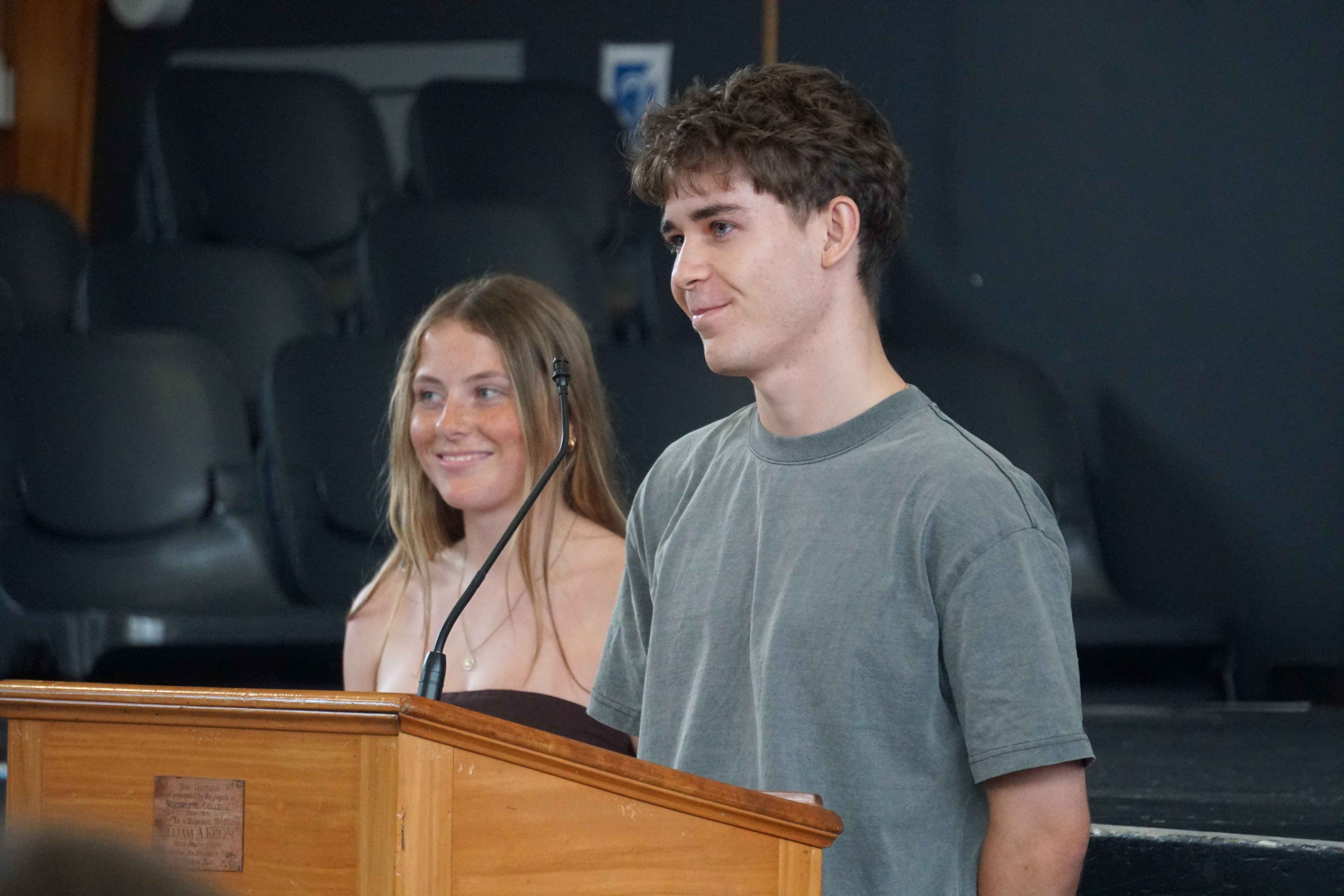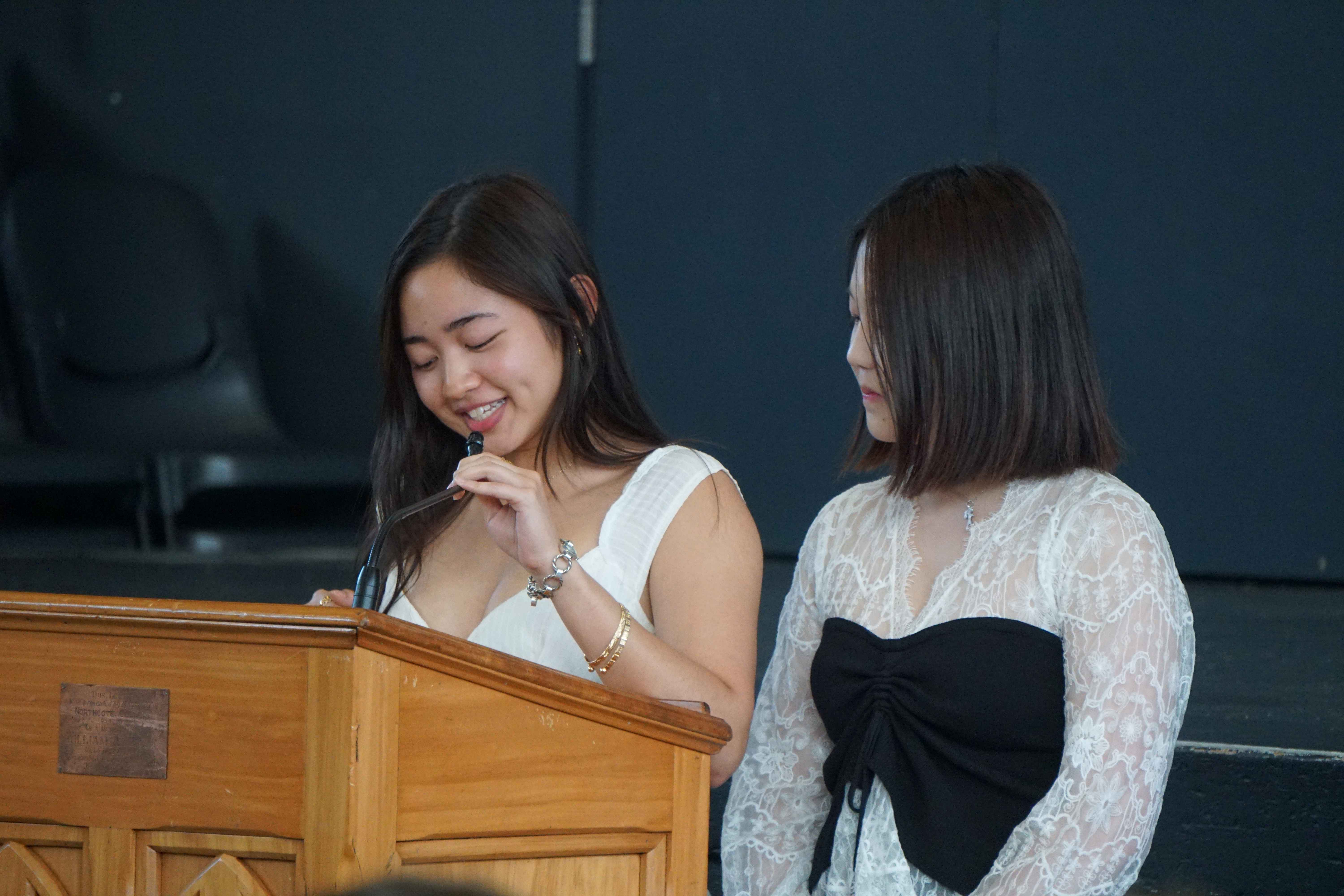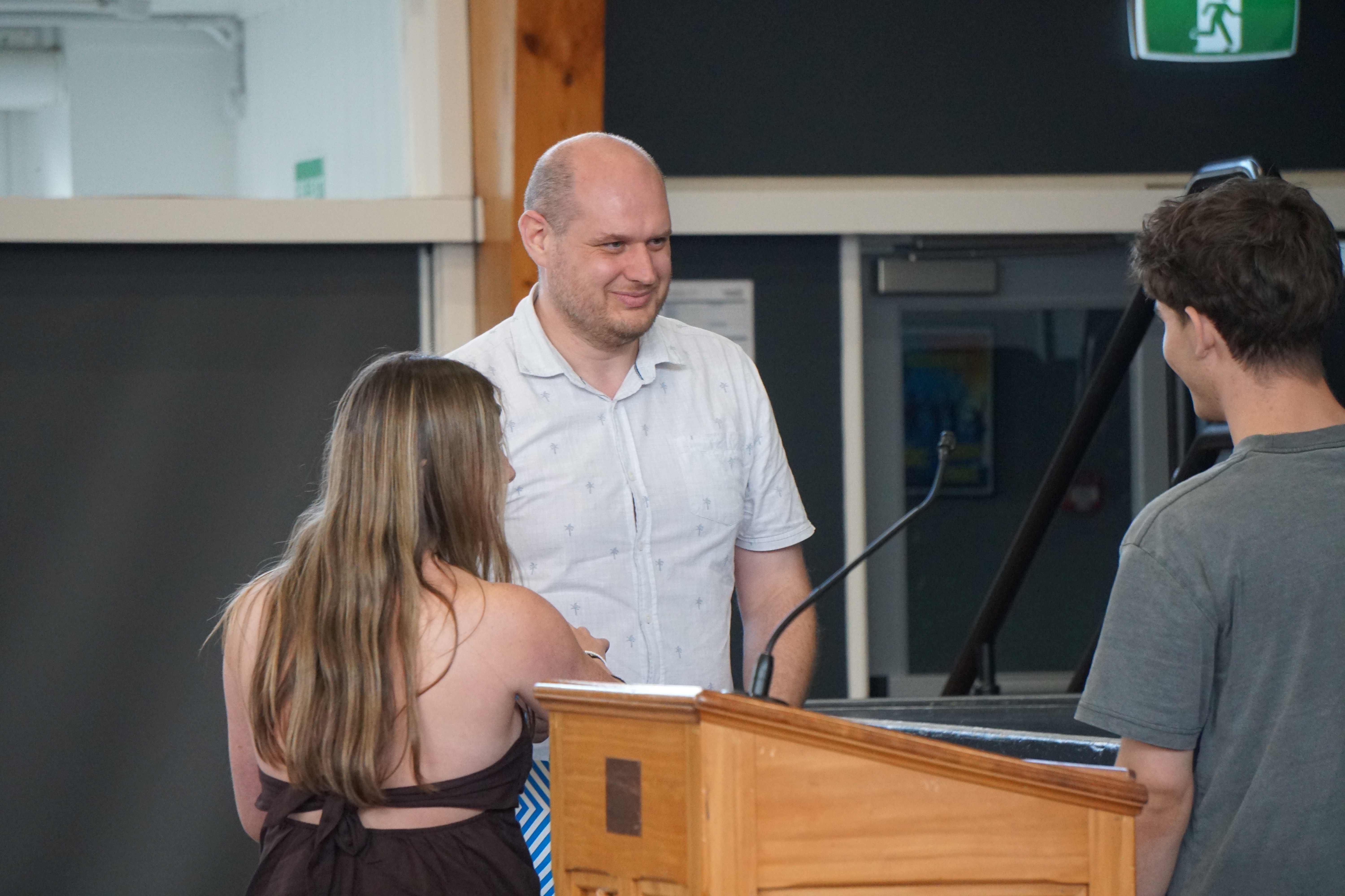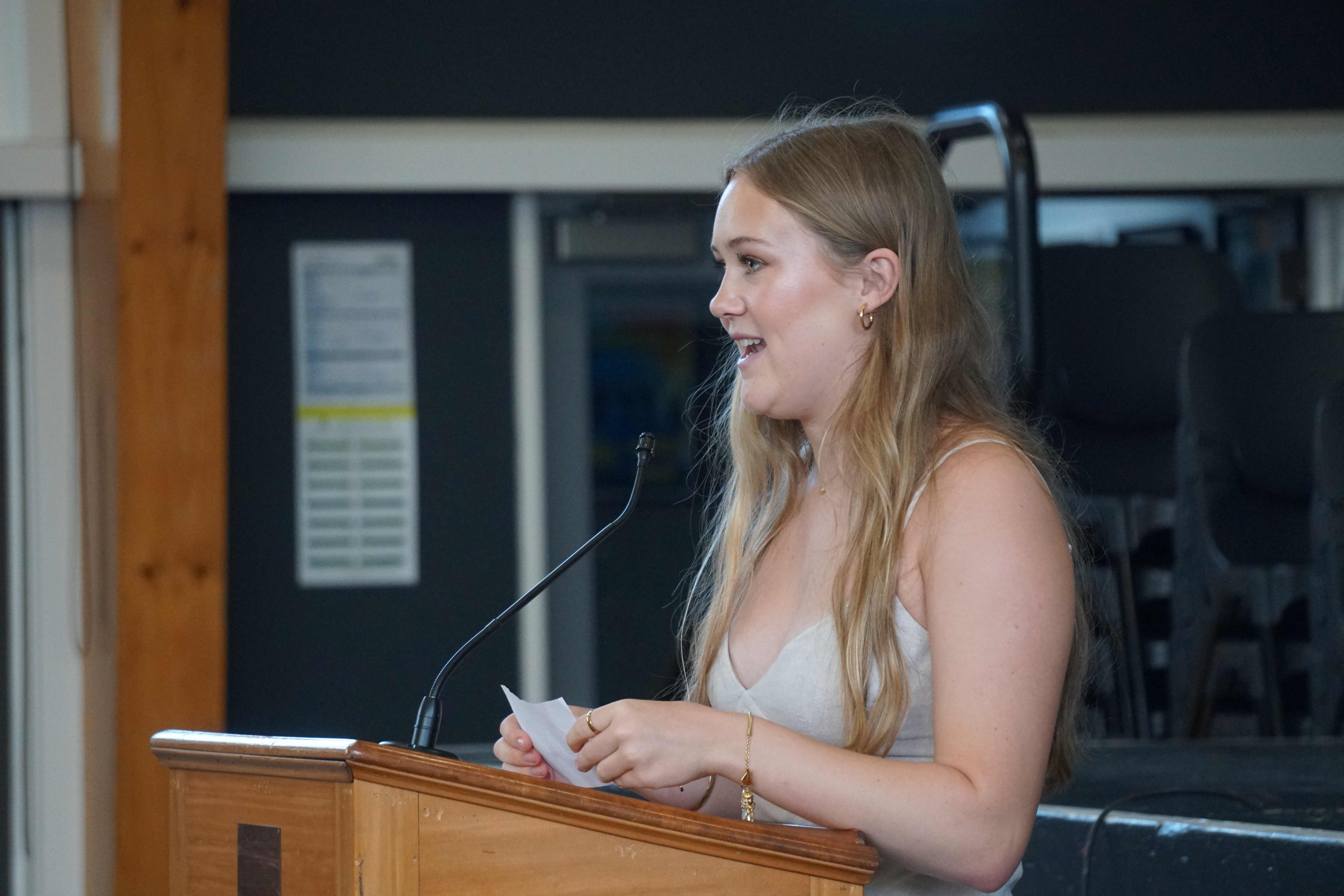 Students from each class thanked their form teachers – Randell Buenafe, Emma Grimwood, Arina Grobler, Fahad Khan, Maxwell McKenzi, Sam Parkes, Bhavini Parbhoo, Trudy Seakins, and Sam Tocker – and presented them with a gift. Our head students thanked Year 13 Dean Aoife Cantwell.